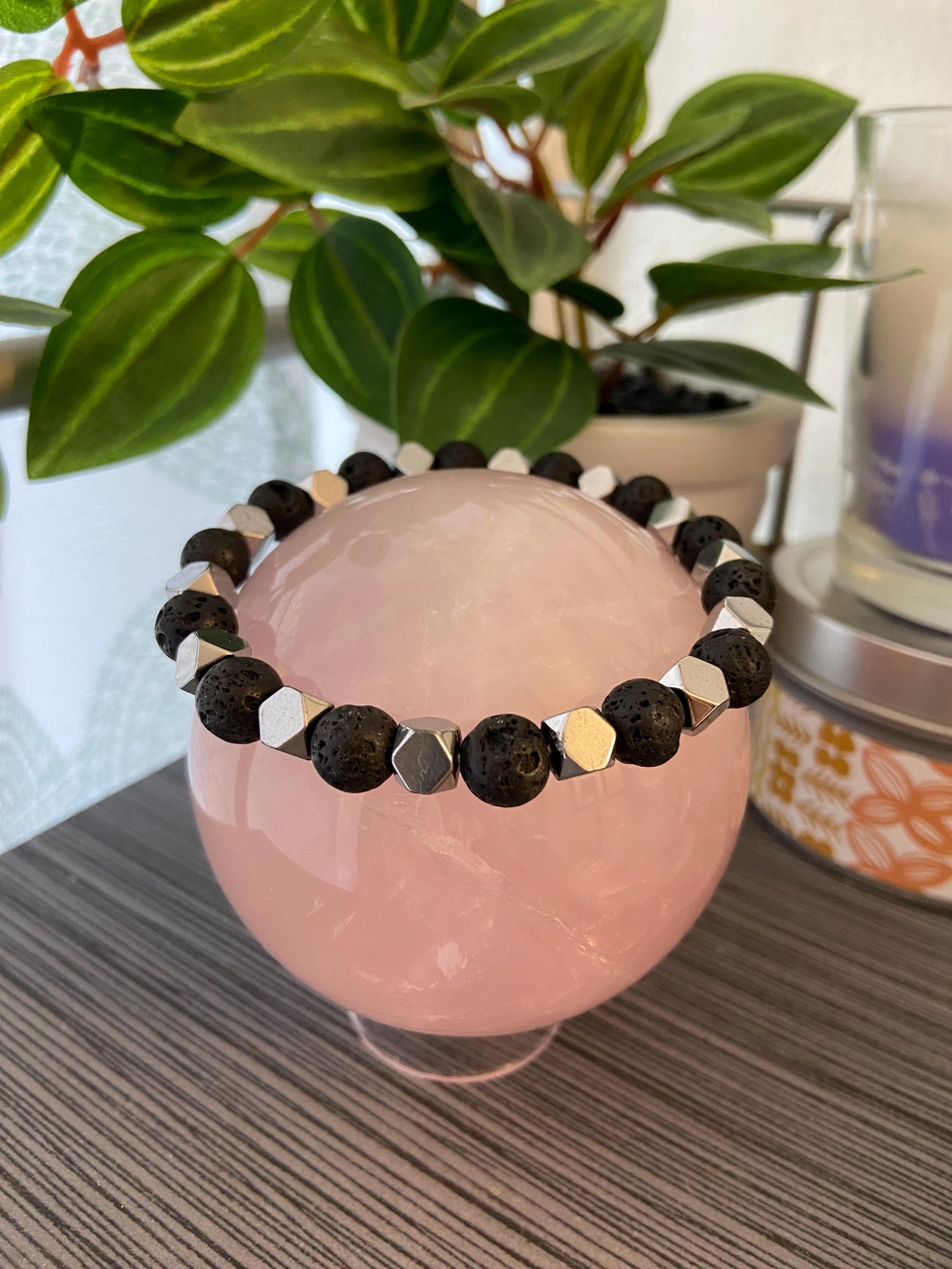 Lava Stone and Hematite Bracelet, handmade genuine gemstone stretch beaded bracelet for spiritual protection