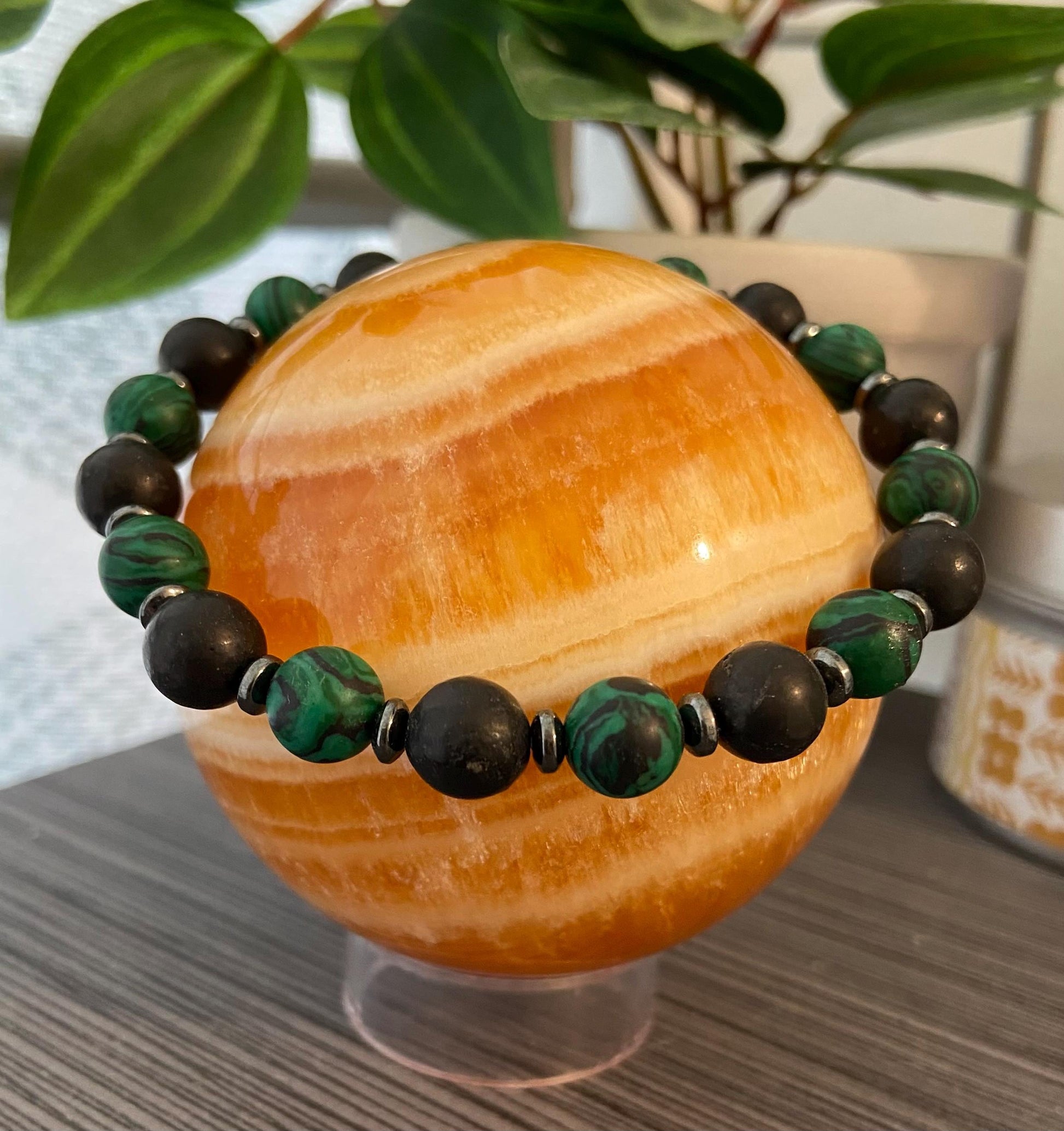 Malachite, Shungite and Hematite Bracelet, handmade 8mm genuine gemstone stretch beaded bracelet for spiritual protection